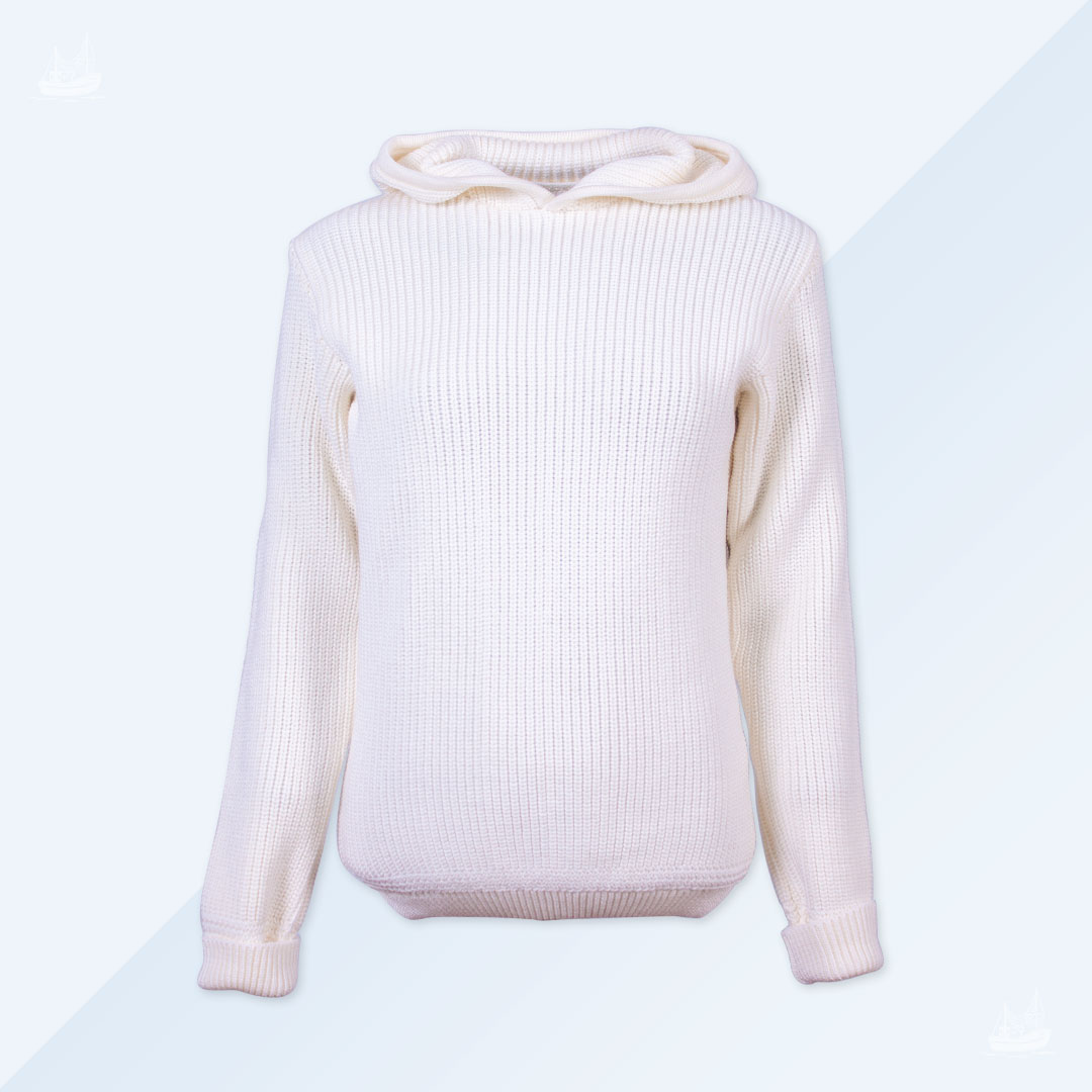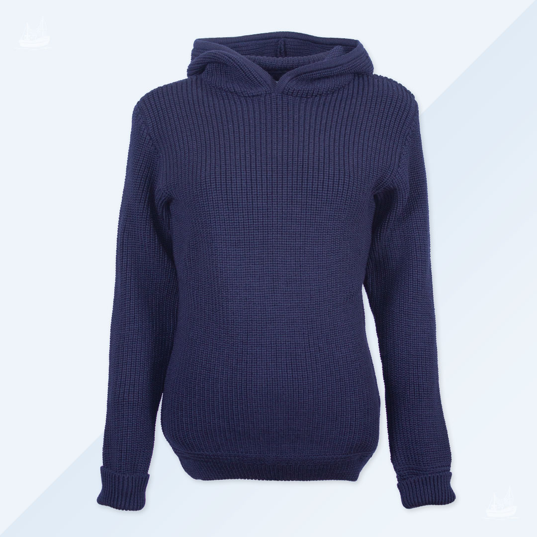 Der Uwe Kapuzentroyer aus Merinowolle hat eine Kapuze im Troyerstil. Er besteht aus 100% Merinowolle und ist komplett verstrickt. Der Uwe Kapuzentroyer aus Merinowolle verfügt über Ärmelbündchen zum Umkrempel, damit man diese auch mal über die Hände ziehen kann. Außerdem hat er ein originales Abschlussbündchen am Rumpf. Das besondere an dem Original ist sein grober Strick und das Volumen. Je nach Größe werden zwischen 1-2kg Wolle in unseren Troyern verstrickt.