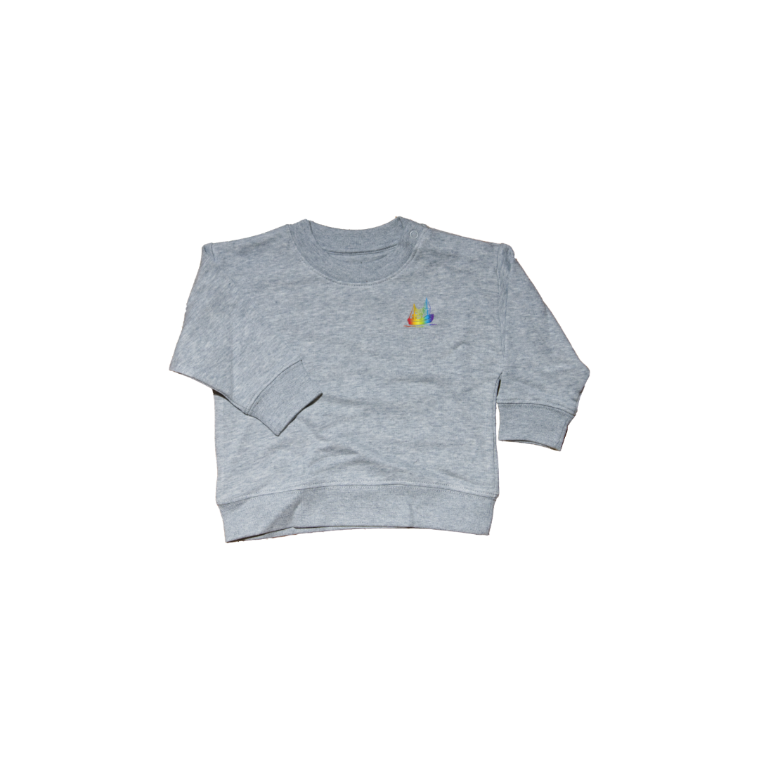 Das Baby-Sweatshirt aus der PRIDE Edition hat einen 1×1 Rippenstrick am Ausschnitt, an den Ärmelenden und am unteren Saum. Das Halsband hat ein Fischgrätenmuster und einen kontrastierenden Halbmond am Hals und Knopfleiste mit 1 gleichfarbigen Druckknopf und 1 verdeckten Druckknopf an Schulter für einfacheres Anziehen. Der Ausschnitt ist mit einfachen Quilts. Die Ärmel, der Saum und die Ärmel sind doppelt genäht. Der Stoff ist innen aufgeraut und daher schön weich auf der Haut.