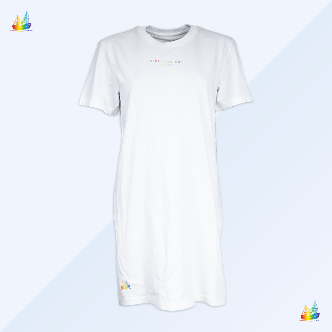 Das PRIDE T-Shirt-Kleid hat ein1x1 Rippstrick am Ausschnitt. An den eingesetzten Ärmeln und am Saum dagegen wurde eine Doppelabsteppung eingearbeitet. Das Nackenband ist aus Jersey. Das T-Shirt-Kleid bestehen aus 100% gekämmter ringgesponnener Bio-Baumwolle. Unser Hersteller ist nach Fair Wear, GOTs, Peta Vegan und Öko Tex zertifiziert.