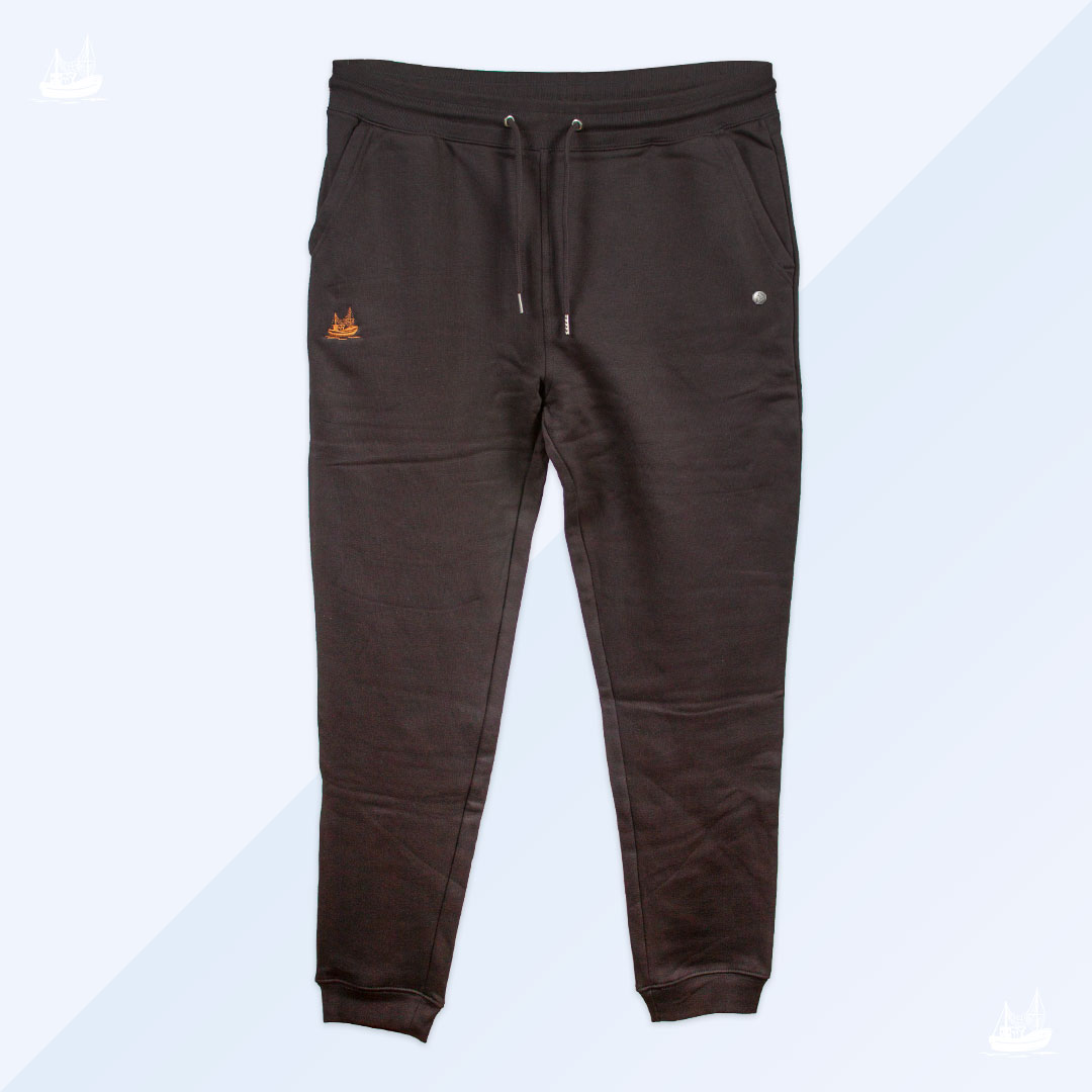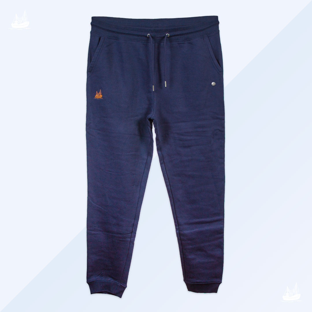 Die Sweat Pants in Unisex hat eine Doppelabsteppung am Hosenbund, Hosentaschen und Hosenende. Außerdem haben die Sweat Pants runde gleichfarbige Kordeln und eine Metallöse am Kordelende. Dazu ist ihre Bundinnenseite und den Taschenböden aus Jersey und sie hat eine paspelierte Gesäßtasche. Der Stoff ist innenseitig angeraut. Die Bündchen sind aus 1×1 Rippstrick.